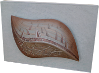 Memories of a 'feeding frenzy' observed in the South Atlantic. An over-saturation of food is preyed upon both from the air and within the sea. Predatory fins zig-zag across the surface masking the frenzied activity taking place below. Inspired by collections in the Pitt Rivers museum in Oxford.