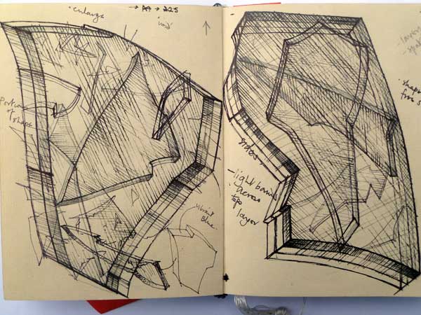 Mixed media on card and wood. Low relief structures contained within a shallow box base.