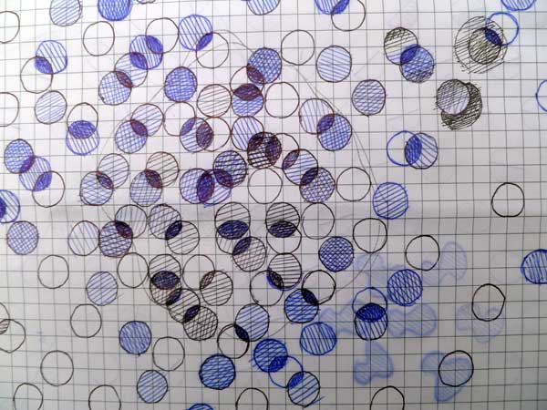 The spontaneous movement of circles of moisture through a semi permeable membrane. A view of snow laden trees near Richmond Park gates. The air is still and the image is moving imperceptibly from representational to geometric. The change is 'frozen in time'.